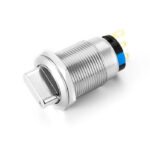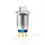 3 pin push button switch Momentary button switch 12 mm mounting hole size. The 1.5mm raised button is easy to operate, with solder terminals. Aluminum alloy shell: durable. Durability: 50,000 cycles long life. Stainless steel button switch function: press to open, release, 2-pin opens normally, easy to operate and use.